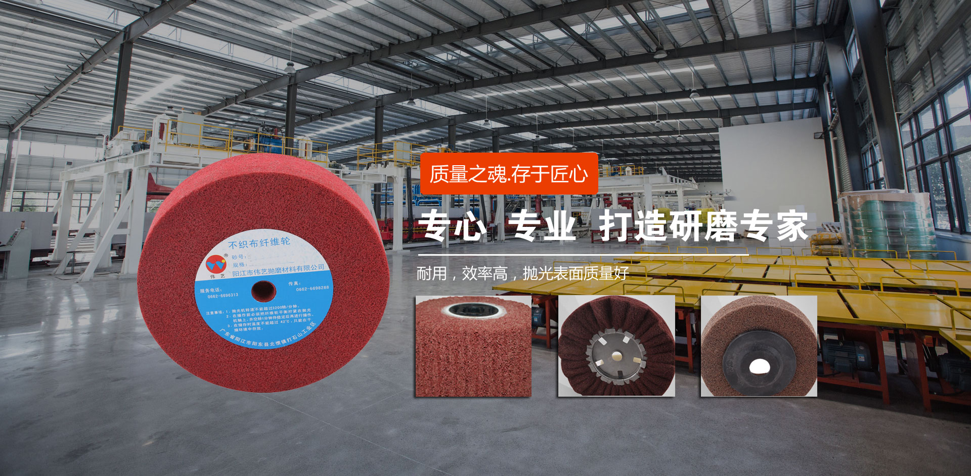 陽江市偉藝拋磨材料有限公司座落于中國刀剪之都——陽江市,具有近二十年尼龍輪生產和銷售經驗,生產基地占地面積4.6萬多平方米。偉藝公司立足自主研發(fā),致力于產業(yè)化發(fā)展。現(xiàn)已研發(fā)、生產了尼龍輪、擦色輪、飛翼輪、拉絲輪、清潔拋、不織布刷輥、工業(yè)擦布、塑膠研磨石、金剛砂、噴膠棉等十多種應用于多種領域的研磨材料,并可以根據客戶的需求提供針對性解決方案和個性化服務。 偉藝公司致...